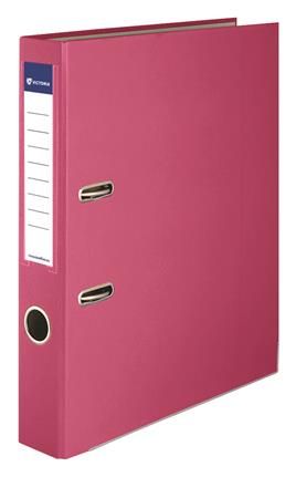 Pákový šanón, 50 mm, A4, PP/kartón, s ochranným spodným kovaním, VICTORIA OFFICE, "Basic", ružový