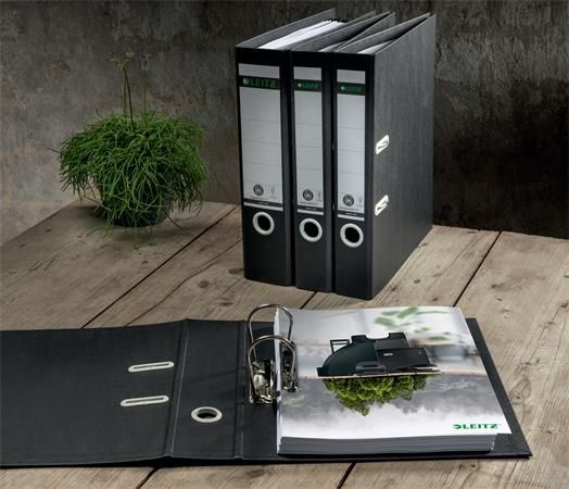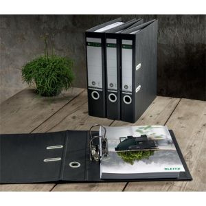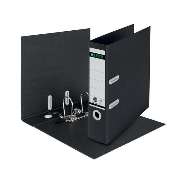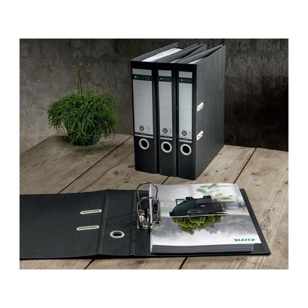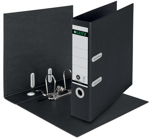 Pákový šanón, 80 mm, A4, kartónový, recyklovaný, LEITZ "180 Recycle", čierna