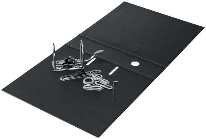 - pevný, papierom potiahnutý šanón na dokumenty v štýlovej čiernej farbe