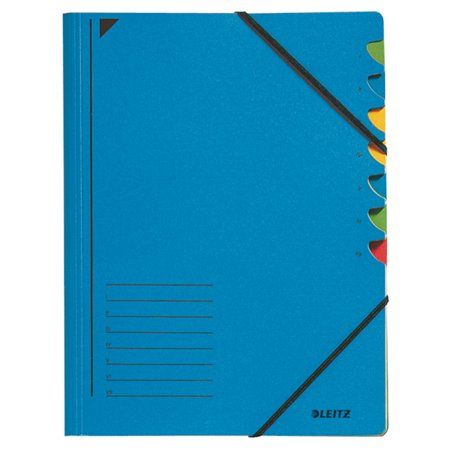 Doska s gumičkou, kartón, A4, na triedenie dokumentov, 7 dielová, LEITZ, modrá