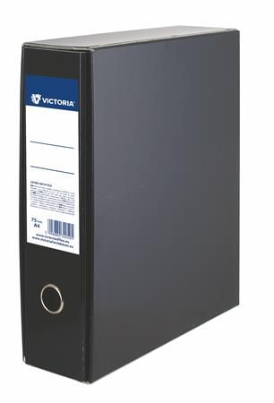 Pákový šanón s obalom, 75 mm, A4, kartón, VICTORIA OFFICE, čierny