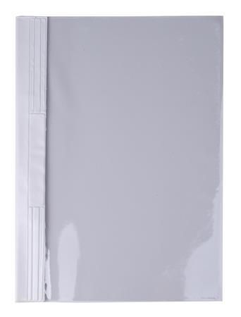 Štandardný rýchloviazač z bieleho PVC s priehľadnou prednou stranou a vymeniteľným pásikom, formát A4; dodávané v taške po 10.