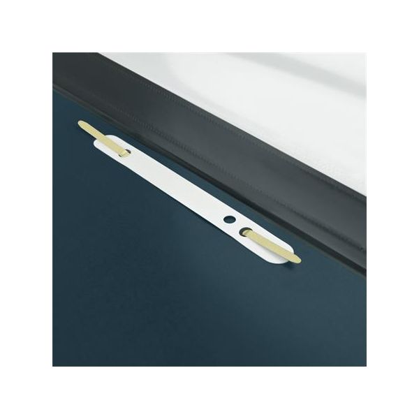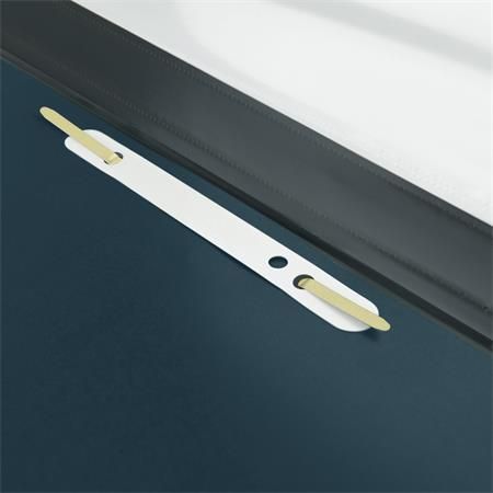 Štandardný rýchloviazač z bieleho PVC s priehľadnou prednou stranou a vymeniteľným pásikom, formát A4; dodávané v taške po 10.