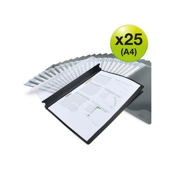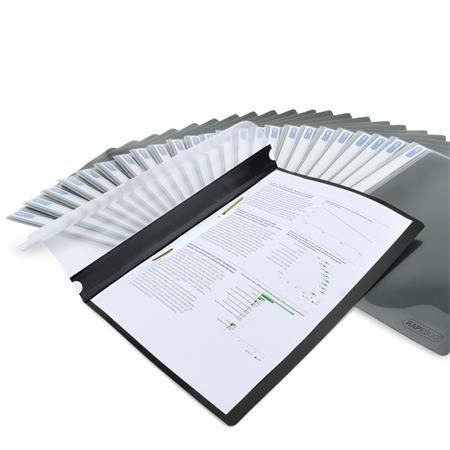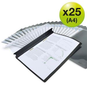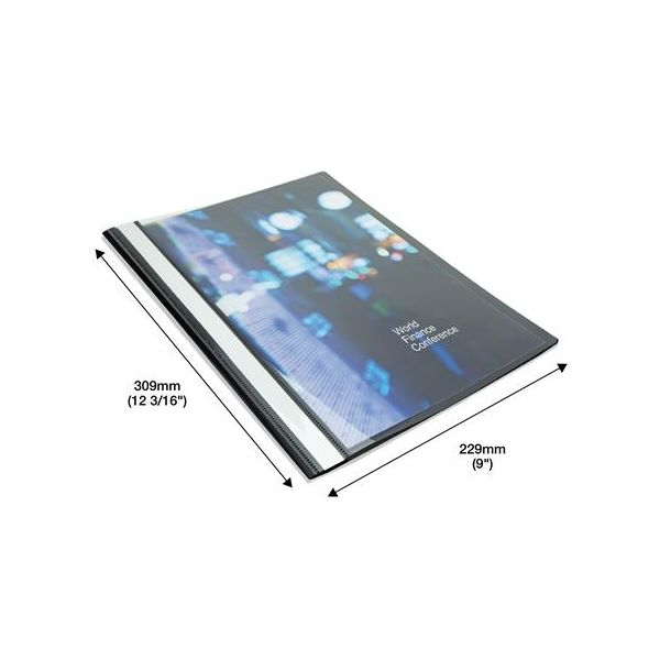 Štandardný rýchloviazač z PVC s priehľadnou prednou stranou a vymeniteľným pásikom, formát A4, dodávané v taške po 10 ks.