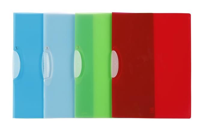 Plastový rýchloviazač vhodný na dokumenty formátu A4, s priehľadnou prednou stranou.