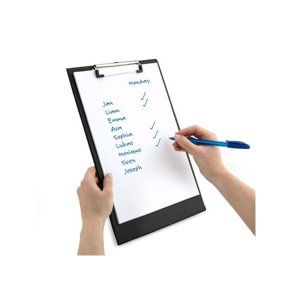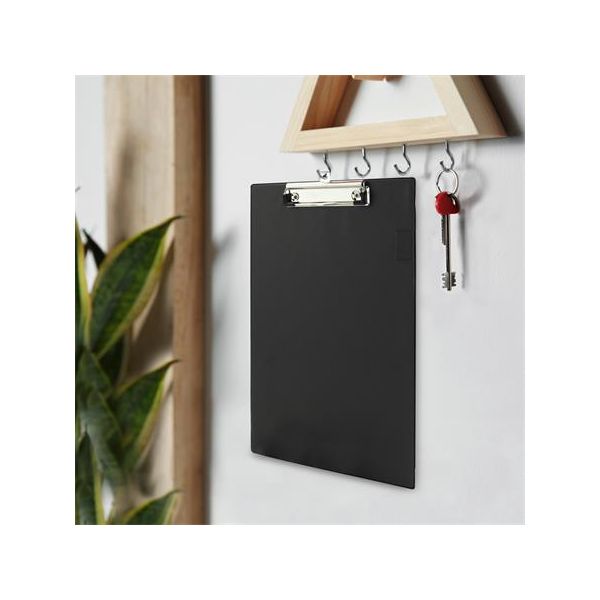Písacia podložka s kovovým klipom na dokumenty formátu A4, možnosť zavesenia. Materiál: z pevného kartónu potiahnutého PVC.