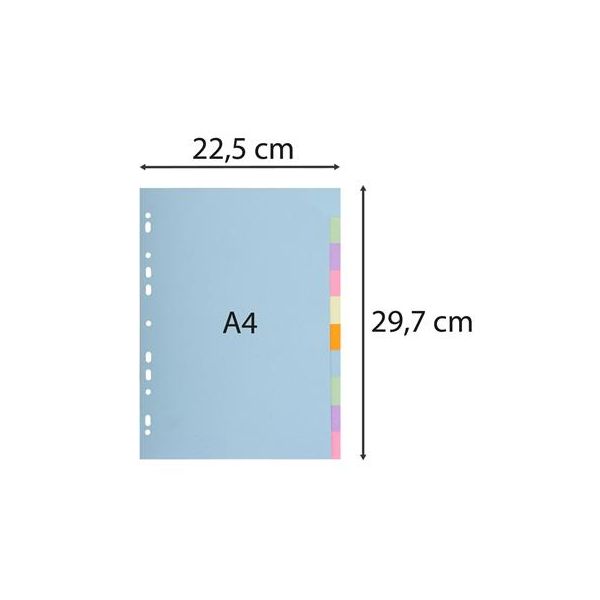 Veľkosť: A4Materiál: kartónFarba: mixPrevedenie: farebnéz ekologického 170 g/m2 papiera formát: A4  10 dielny  s eurodierovaním 10 rôznofarených ušiek pre jednoduché triedenie materiel s…