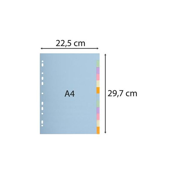 Veľkosť: A4Materiál: kartónFarba: mixPrevedenie: farebnéz ekologického 170 g/m2 papiera formát: A4  12 dielny  s eurodierovaním 12  rôznofarených ušiek pre jednoduché triedenie…