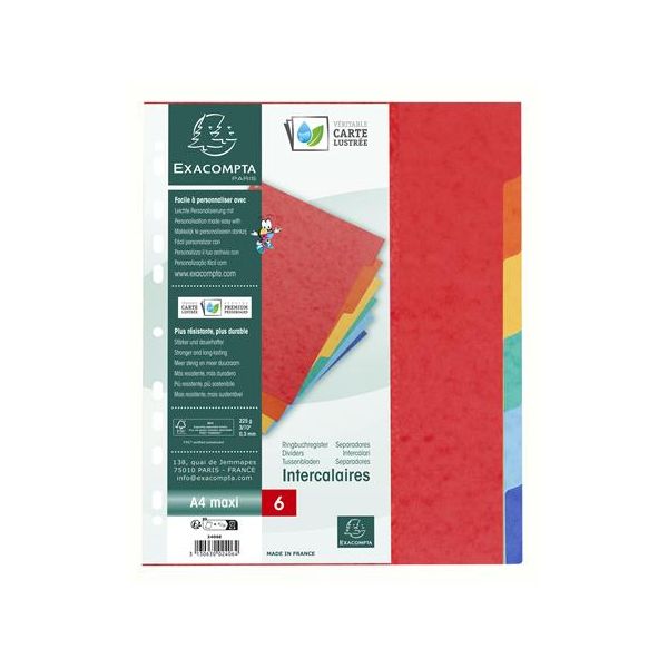 Register, kartónový, A4+, 6 dielny, EXACOMPTA, farebný