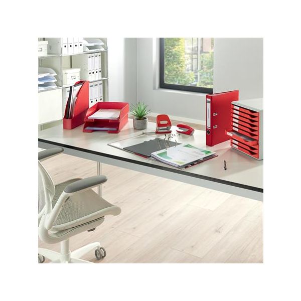 Podskupina: odkladačFarba: červená a odtieneVeľkosť: A4veľkokapacitný odkladač prémiovej kvality Leitz Plus odkladač je kombinovateľný s ostatnými Leitz Plus odkladačmi vo vodorovnej či zvyslej…