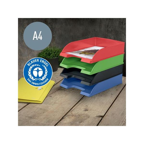 Pútavý plastový odkladač na stôl prémiovej kvality vyrobený z minimálne 90 % recyklácie domáceho odpadu! -pre dokumenty veľkosti A4 -klimaticky neutrálne vďaka zníženiu a kompenzácii emisií uhlíka, 100% recyklovateľné -produkt s certifikátom ochrany životného prostredia Blue Angel -robustné uloženie dokumentov dokonale dopĺňa ostatné produkty produktového radu Leitz Recycle -moderné kancelárske potreby, ktoré vyzerajú skvele ako doma a v kancelárii -široký dizajn zaisťuje ľahký prístup k obsahu aj pri položení niekoľkých podnosov na seba - možnosť položiť na seba buď vertikálne alebo stupňovito - hladký povrch, ktorý sa ľahko čistí - pevný a odolný, matný dizajn
