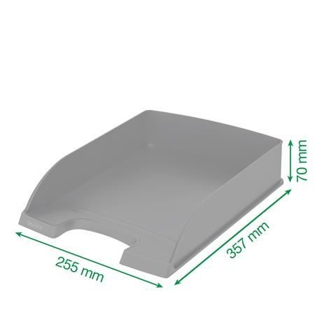 Pútavý plastový odkladač na stôl prémiovej kvality vyrobený z minimálne 90 % recyklácie domáceho odpadu! -pre dokumenty veľkosti A4 -klimaticky neutrálne vďaka zníženiu a kompenzácii emisií uhlíka, 100% recyklovateľné -produkt s certifikátom ochrany životného prostredia Blue Angel -robustné uloženie dokumentov dokonale dopĺňa ostatné produkty produktového radu Leitz Recycle -moderné kancelárske potreby, ktoré vyzerajú skvele ako doma a v kancelárii -široký dizajn zaisťuje ľahký prístup k obsahu aj pri položení niekoľkých podnosov na seba - možnosť položiť na seba buď vertikálne alebo stupňovito - hladký povrch, ktorý sa ľahko čistí - pevný a odolný, matný dizajn