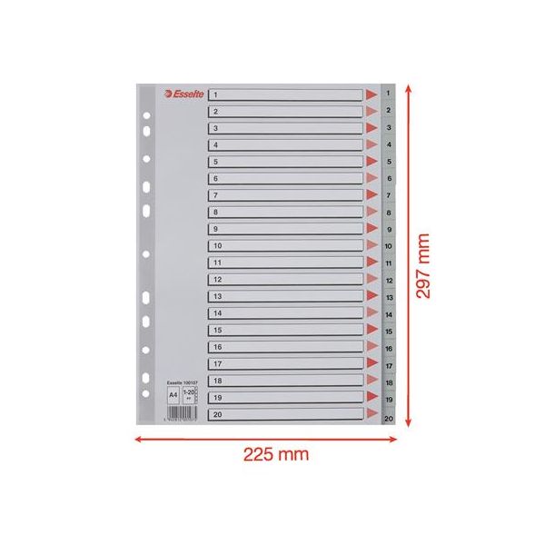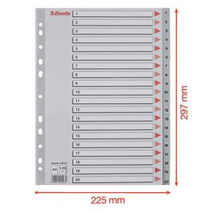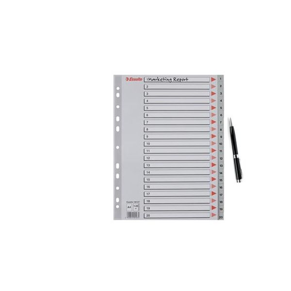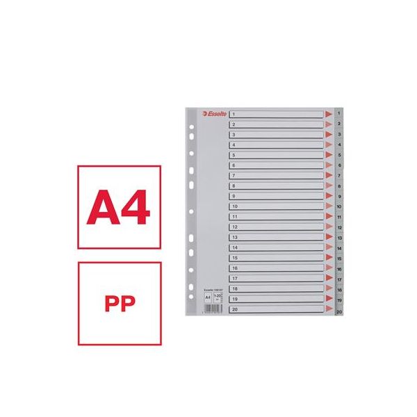 Register, plastový, A4, 1-20, ESSELTE, sivý