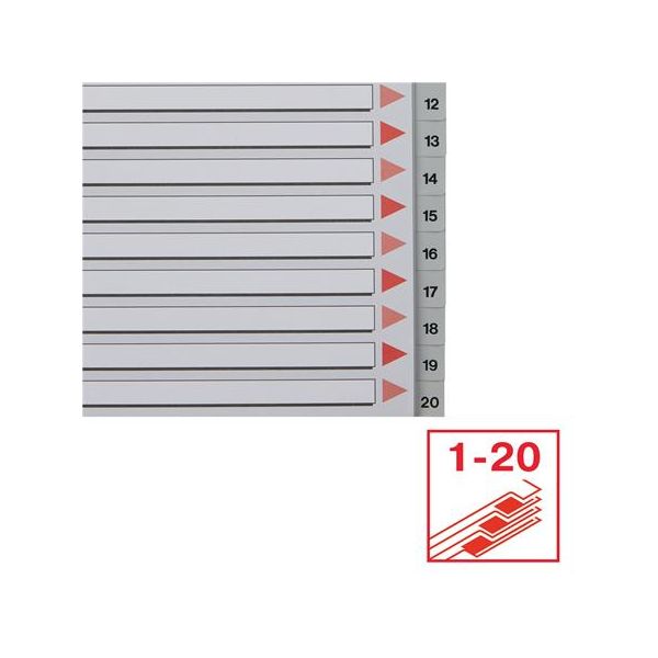 Rozdelenie: 1-20Materiál: plastVeľkosť: A4Farba: sivá a odtieneformát: A4 praktické riešenie pre triedenie dokumentov kvalitný plastový materiál v sivom prevedení počet dier: 11 hrúbka: 0,12 mm…