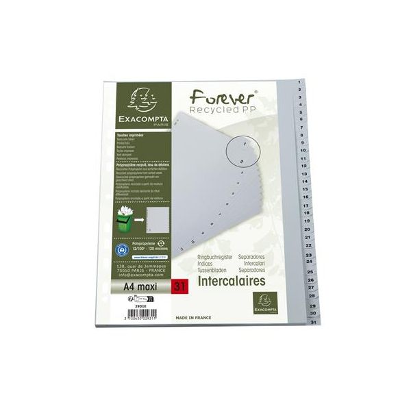 Register, plastový, A4+, 1-31, EXACOMPTA, sivý