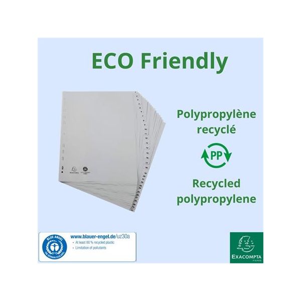 z ekologického 170 g/m2 papiera formát: A4 10 dielny s eurodierovaním 10 rôznofarených ušiek pre jednoduché triedenie materiel s certifikátom Blue Angel