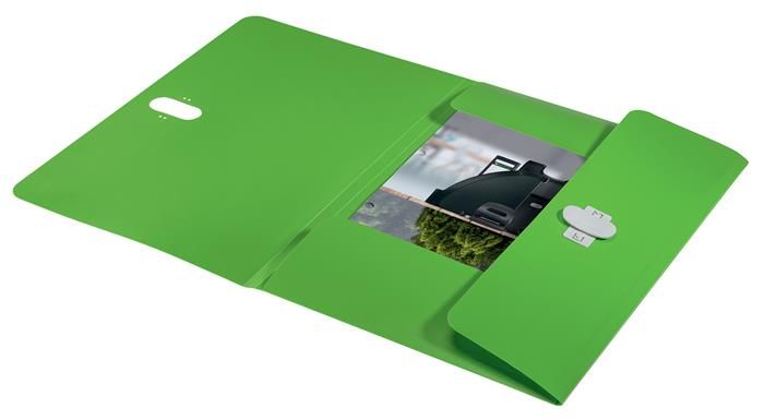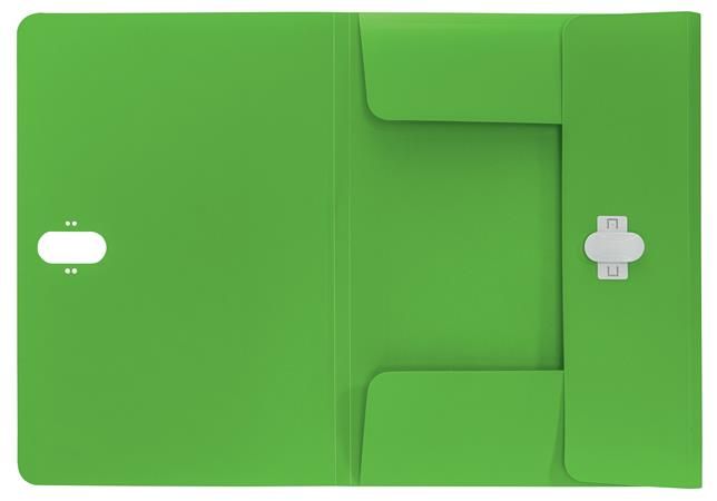 Zakladací obal na dokumenty formátu A4 s tromi chlopňami a gumičkou. Obal je vyrobený z nepriehľadného PP materiálu.