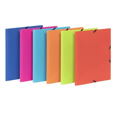 Zakladací obal na dokumenty formátu A4 s tromi chlopňami a gumičkou. Obal je vyrobený z nepriehľadného PP materiálu.