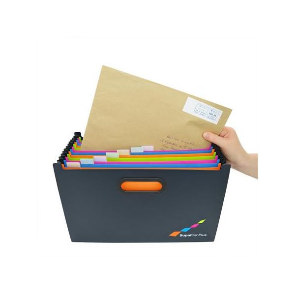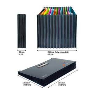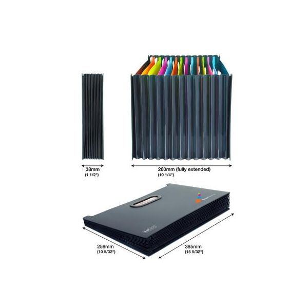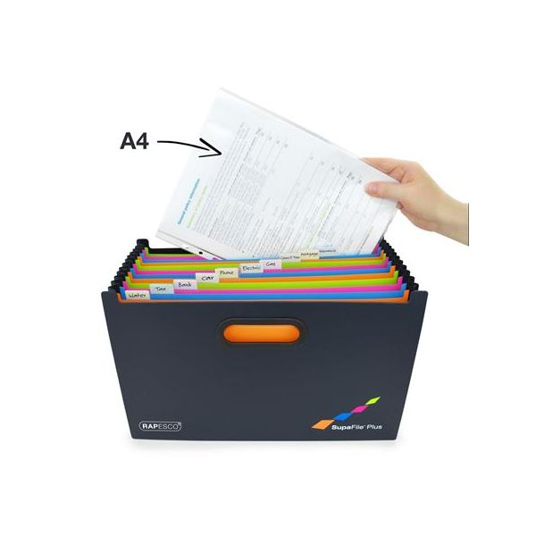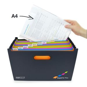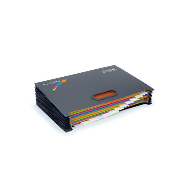 Harmonikový box na dokumenty, A4+, PP, 13 priehradiek, RAPESCO "SupaFile Plus", čierny