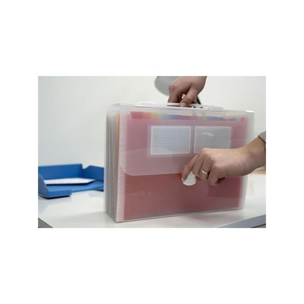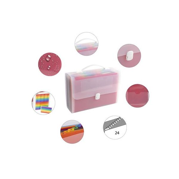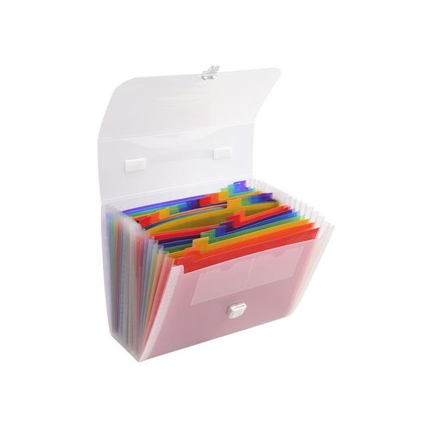 Veľkosť: A4Materiál: PPFarba: mixHarmonikové: ÁnoPočet priehradiek a vreciek: 24 ksHarmoniková taška s ergonomickou rukoväťou, ideálnu aj na cestovanie. materiál: PP  pružný, odolný, z…