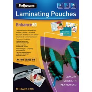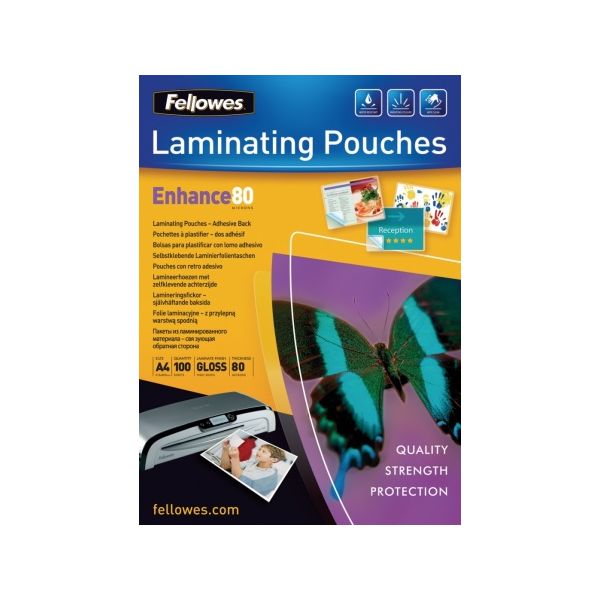 Laminovacia fólia, 80 mikr., A4, lesklá, samolepiaca, 100 ks, FELLOWES