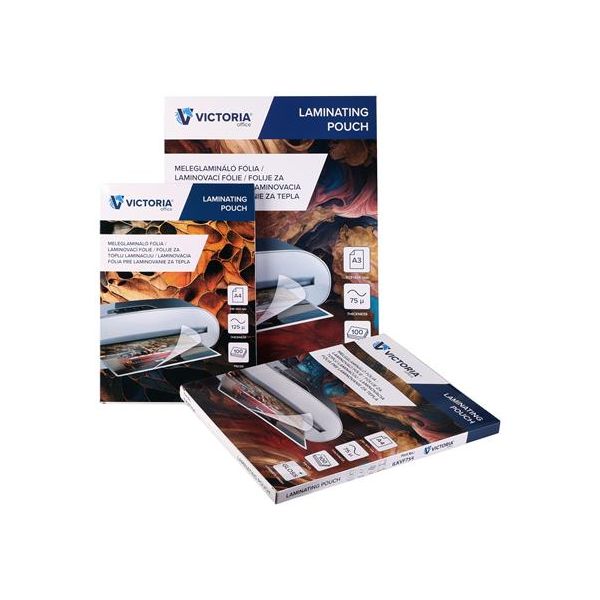 Laminovacia fólia, laminovateľná za tepla, 75 mikr., A3, lesklá, VICTORIA OFFICE