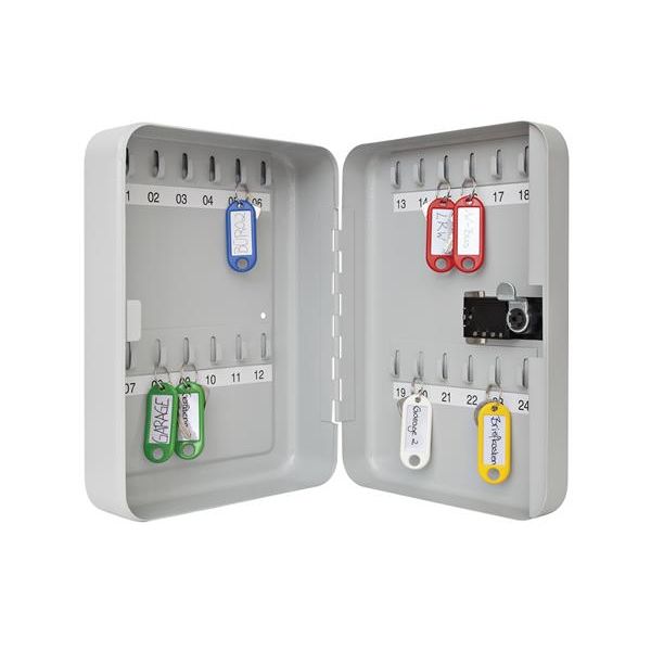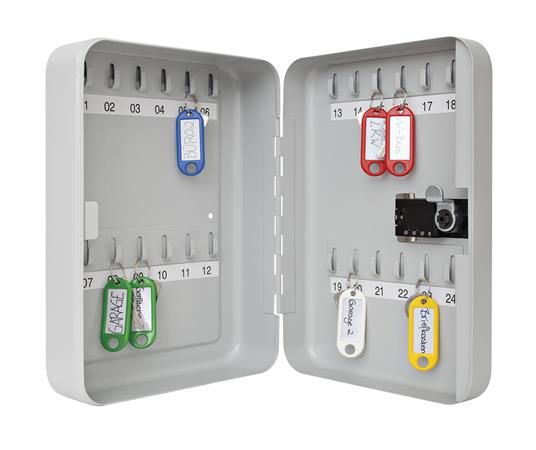 - oceľová skrinka s mechanickým zámkom na číselný kód, kapacita: 24 kľúčov