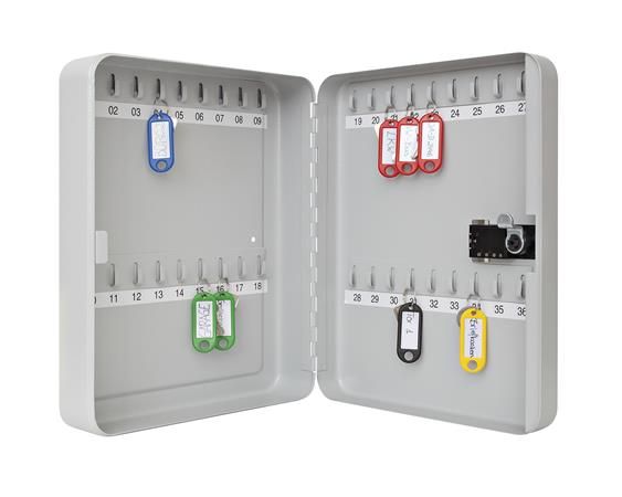 - oceľová skrinka s mechanickým zámkom na číselný kód, kapacita: 36 kľúčov