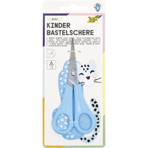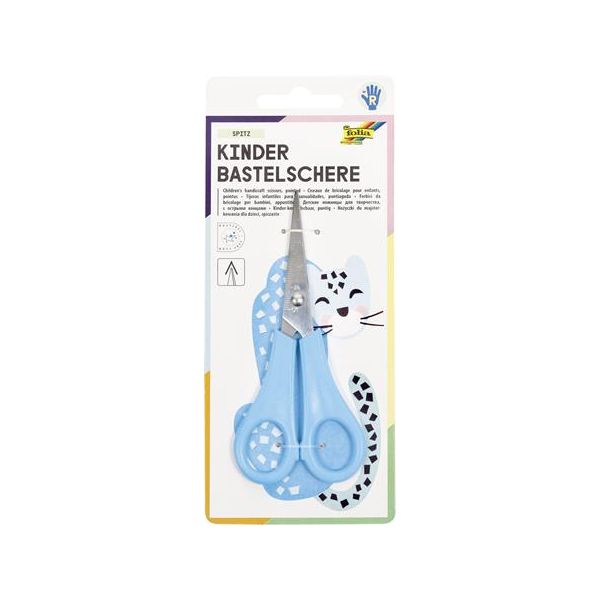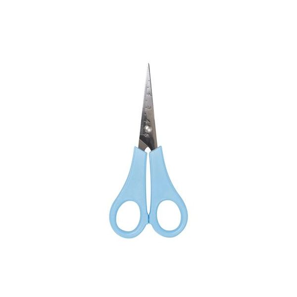 Detské nožnice s merítkom na čepeli, dĺžka nožníc 13 cm, s rukoväťami z PVC, dodávané na blistri, v modrej a oranžovej a zelenej farbe. Rozmer: 130x55mm, 40mm čepeľ.