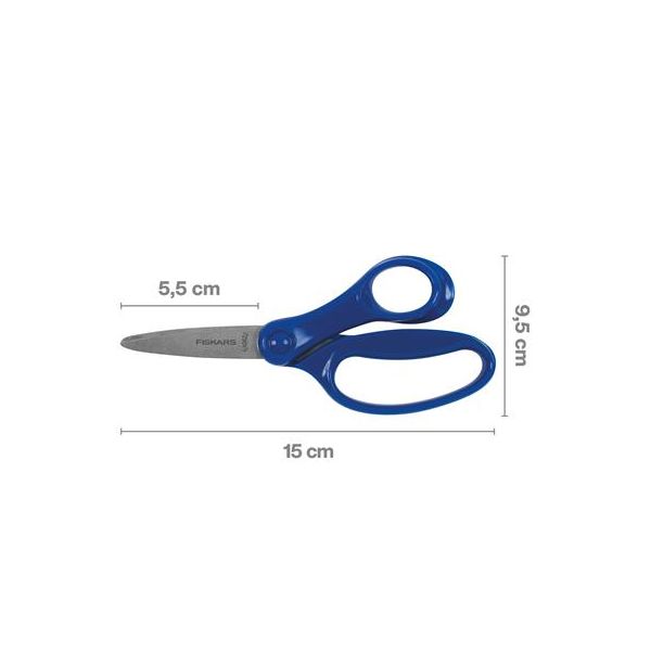 Školké nožnice s ergonomickou rukoväťou v troch pestrých farbách. Rukoväť je vyrobená z tvrdého ale zároveň na dotyk príjemného materiálu.Čepeľ nožníc je vyrobená z kvalitnej nerezovej ocele, pričom koniec čepele je zaoblený.