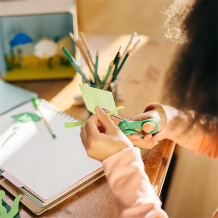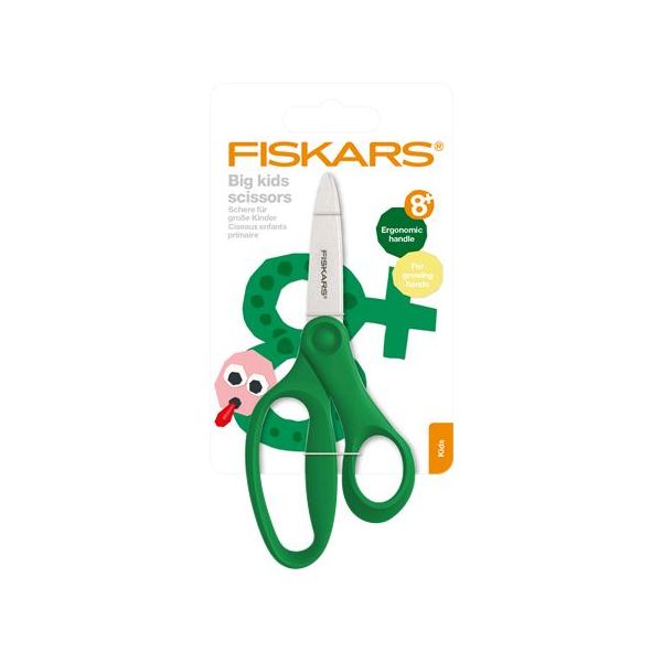 Školké nožnice s ergonomickou rukoväťou v troch pestrých farbách. Rukoväť je vyrobená z tvrdého ale zároveň na dotyk príjemného materiálu.Čepeľ nožníc je vyrobená z kvalitnej nerezovej ocele, pričom koniec čepele je zaoblený.