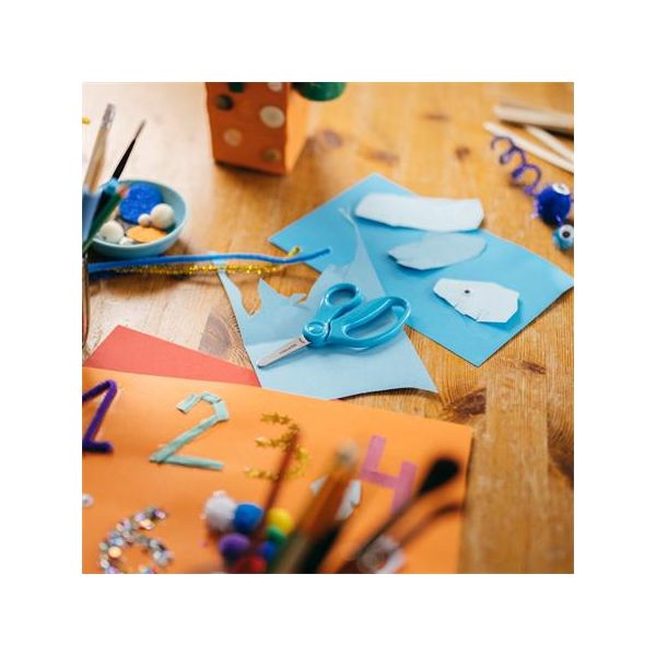 Detské nožnice s merítkom na čepeli, dĺžka nožníc 13 cm, s rukoväťami z PVC, dodávané na blistri, v modrej a oranžovej a zelenej farbe. Rozmer: 130x55mm, 40mm čepeľ.