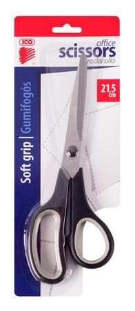 Nožnice s asymetrickými rukoväťami z PVC, dĺžka nožníc 165 mm, dodávané na blistri. Rozmer: 160x55mm, 75mm čepeľ.