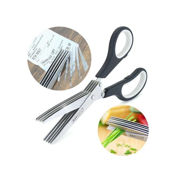 - nožnice s 5 čepeľami, ktoré sa dajú perfektne využiť v kuchyni alebo na papier