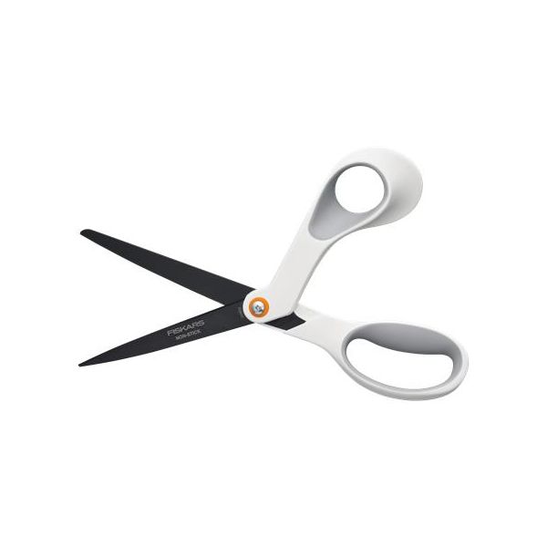 Nožnice, univerzálne, s nepriľnavým povrchom, 21 cm, FISKARS "Titanium", biela
