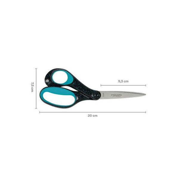 Nožnice, pre tínedžerov, 20 cm, pre ľavákov, FISKARS, bodkované pávie modré