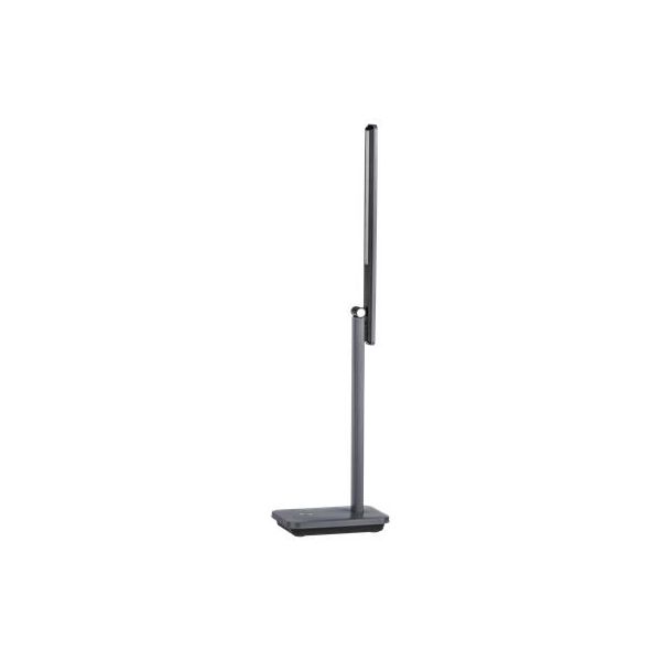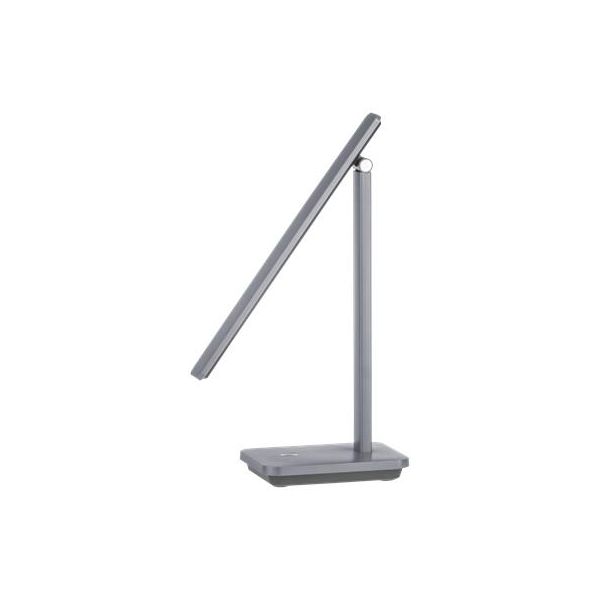 INIESTA LED stolová lampa s nastaviteľnou hlavou lampy, možno otáčať a nakláňať podľa želania. Hlava lampy obsahuje vstavané LED žiarovky so sivým plastovým krytom, nastaviteľné biele svetlo. Má dotykový spínač a USB port.