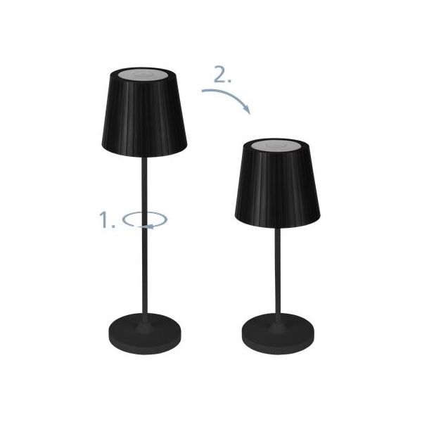 3,8W IP44 (vhodná pre vonkajšie použitie) nabíjateľná stolová lampa s dotykovým ovládaním, 2400-3000-4000K, stmievateľná, USB port; čierna farba.