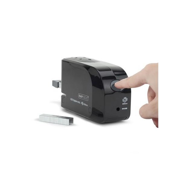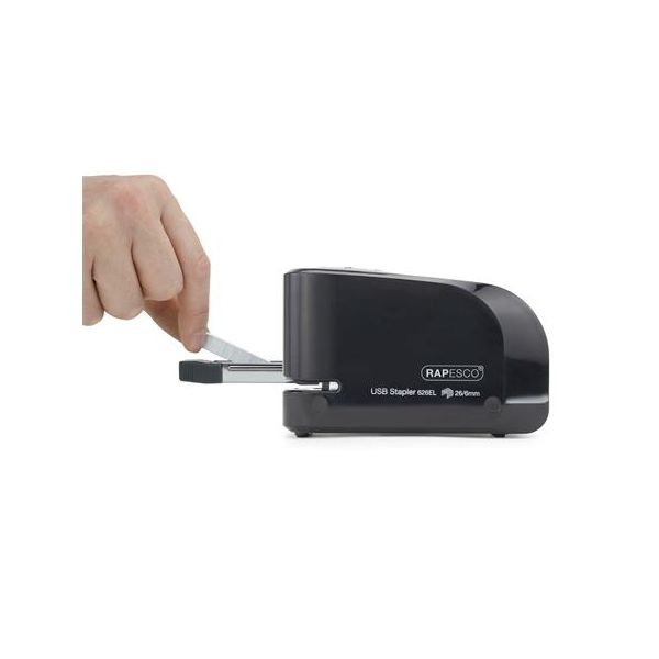 Zošívačka, 26/6, 15 listov, elektrická, s USB nabíjačkou, RAPESCO "626EL", čierna