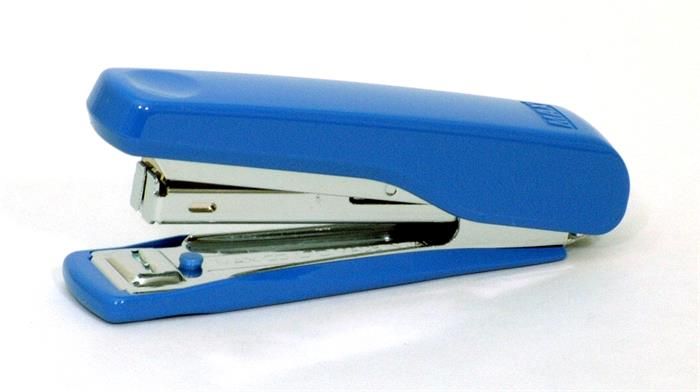Odolná, kovová zošívačka s farebným plastovým tlačidlom (3 farby). výkon zošitia do 12 listov max hĺbka vloženia listov 50 mm náplň, spinky No 10 Cena je za 1 kus.