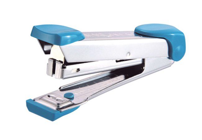 Odolná, kovová zošívačka s farebným plastovým tlačidlom (3 farby). výkon zošitia do 12 listov max hĺbka vloženia listov 50 mm náplň, spinky No 10 Cena je za 1 kus.