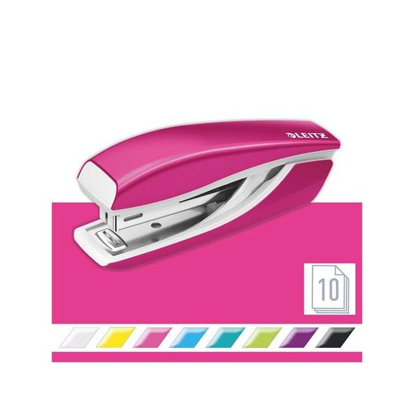 Zošívačka, mini, No. 10, 10 listov, kovová, LEITZ "Nexxt Wow", ružová