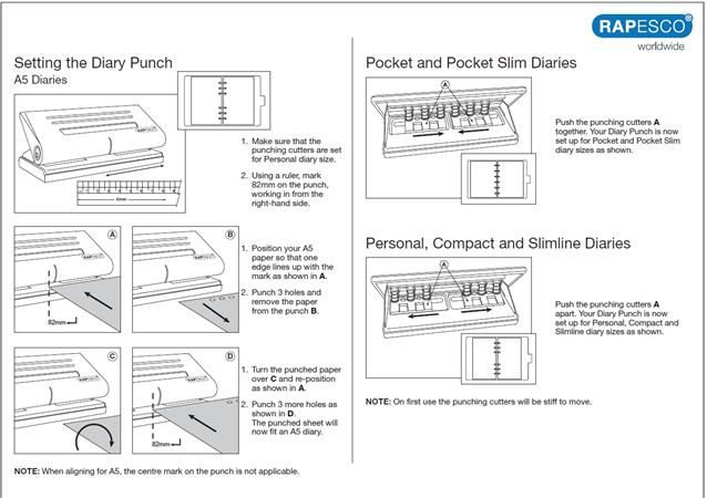 Dierovačka, 6-dierová, 8 listov, kovová, RAPESCO "Diary 66", matná čierna