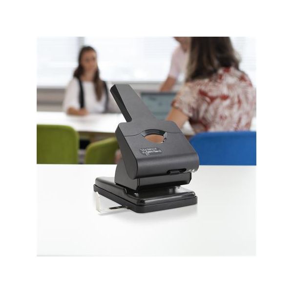 Dierovačka, veľkokapacitná, dvojdierová, 63 listov, antibakteriálna, RAPESCO "865-P2", čierna