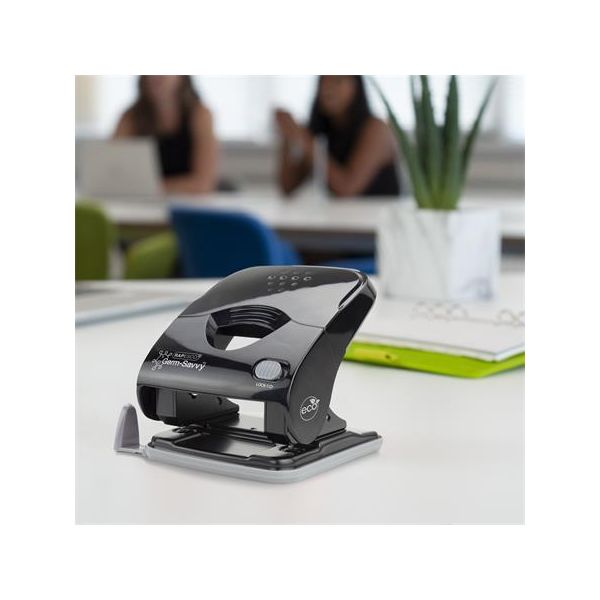 Dierovačka, 2-dierová, 40 listov, uľahčené dierovanie, antibakteriálna, RAPESCO "ECO-X5", čierna