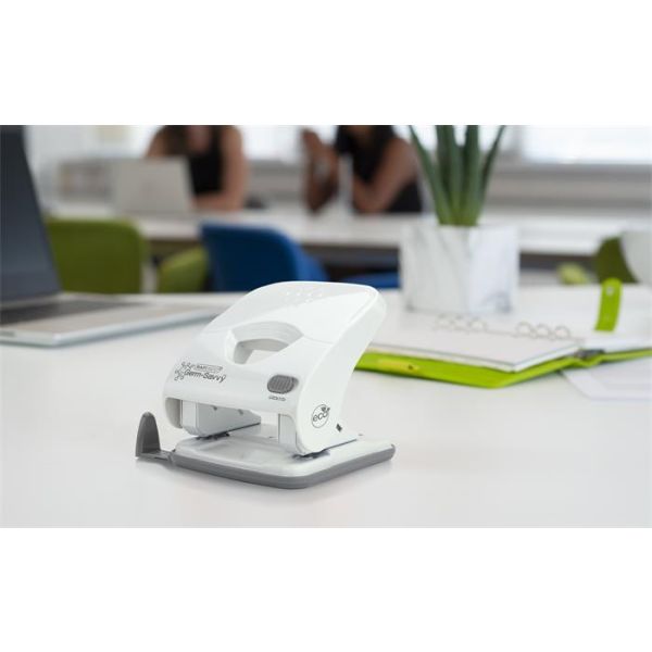 Dierovačka, 2-dierová, 40 listov, uľahčené dierovanie, antibakteriálna, RAPESCO "ECO-X5", biela