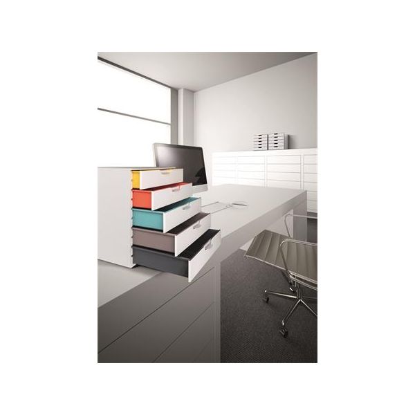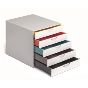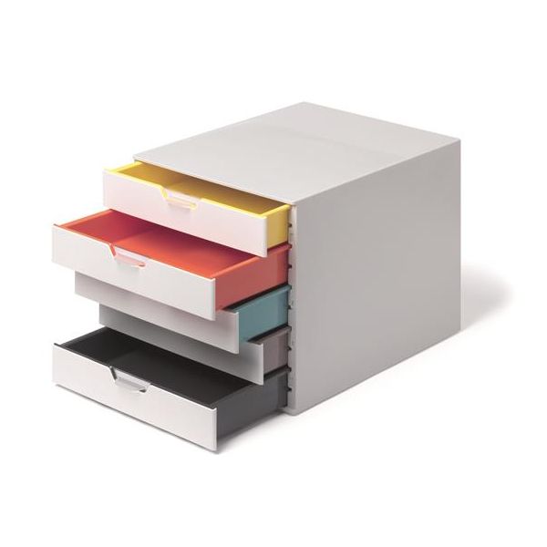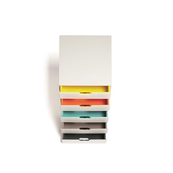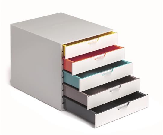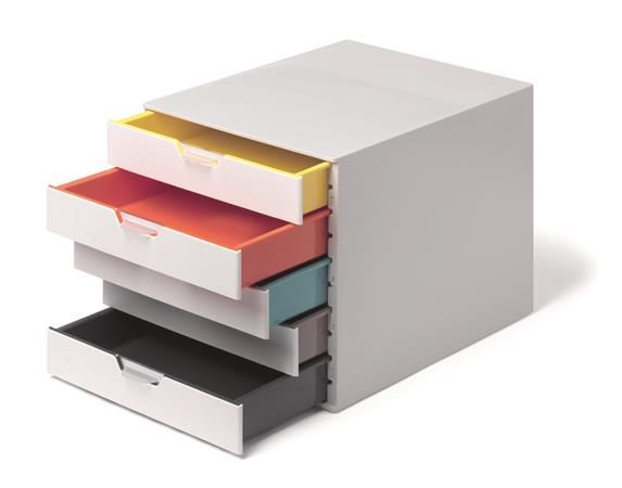 - elegantný, inovatívny zásuvkový box, 5 farebných zásuviek
