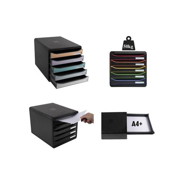 Box na dokumenty, plast, 5 zásuviek, EXACOMPTA "Big-Box Plus Blackoffice Iderama"