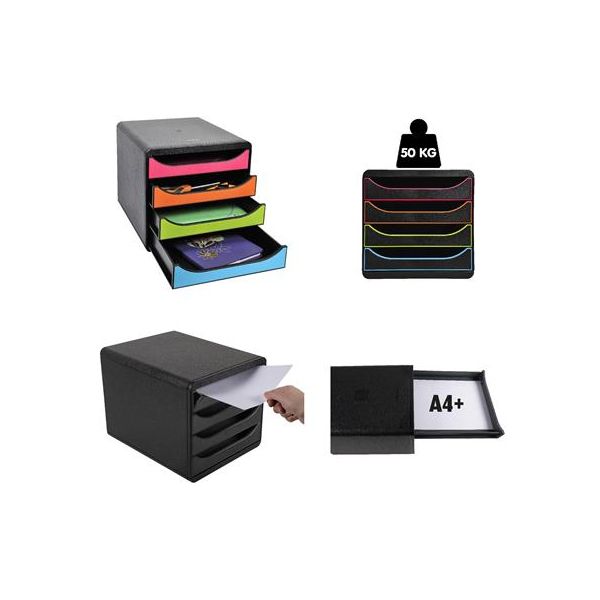 Box na dokumenty, plastový, 4 zásuvky, EXACOMPTA "Big-Box Office", sivý