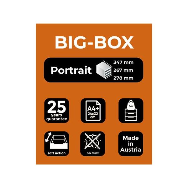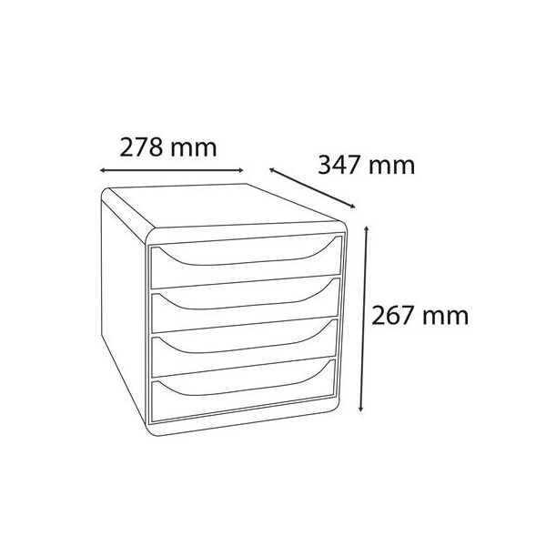 Box so štyrmi zatvorenými zásuvkami v tvare počítačového monitora.Rozmery (š × v × h) 294 × 235 × 368 mm.Farba boxu/zásuvky: sivá/siváRozmery: 294x235x368 mm